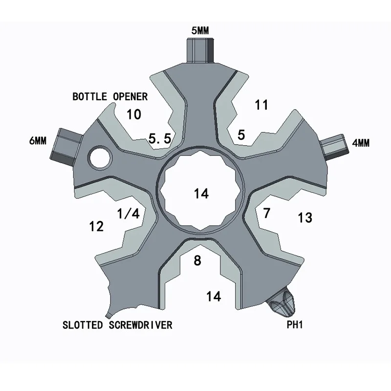 Christmas Gifts 18 in 1 Bike Tools Stainless Steel Portable EDC Gadget Pentagon Snowflake Multitools for Outdoor